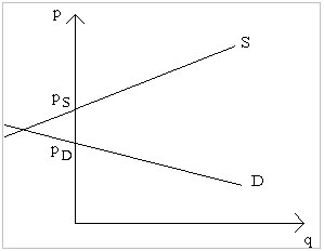 Sie wären maximal bereit den Preis PD für das Gut zu zahlen. Es kommt also nicht zum Schnittpunkt von Angebot und Nachfrage, und damit zu keinem Gleichgewicht.